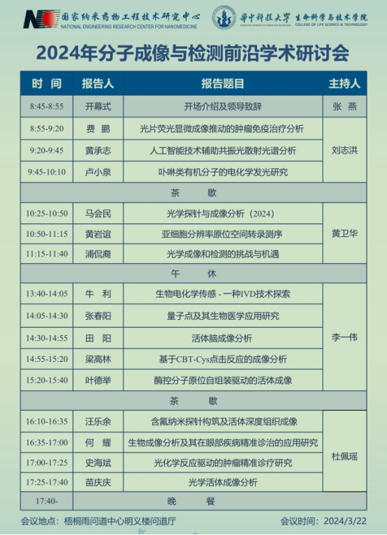 william威廉英国/国家纳米药物工程技术中心拟定于2024年3月21日-2024年3月24日召开2024年分子成像与检测前沿学术研讨会。会议将邀请学科前沿领军专家和著名学者与会并做特邀报告。此次论坛重点研讨分子成像和检测等领域的最新研究进展,通过学术交流,促进交叉与合作。