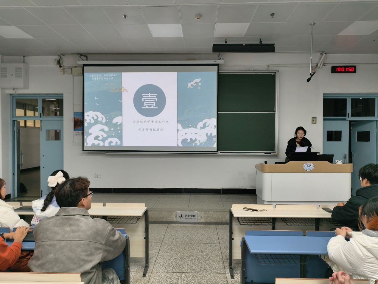 会议伊始,生物信息学专业本科生党支部书记、2024级本科生辅导员任鑫琦老师致辞。她指出,生物信息学作为前沿交叉学科,扎实的专业基础是核心竞争力,并鼓励学生“以奋斗为舟”夯实学科根基,主动参与科研实践。同时,她号召低年级同学积极向党组织靠拢,在服务与实践中锤炼品格,不断成长。“专业学习是一场持久战,需要清晰的规划和全方位的努力。任鑫琦强调,“希望同学们以优秀学长学姐为榜样,在专业上追求卓越,在思想上向阳而生。”