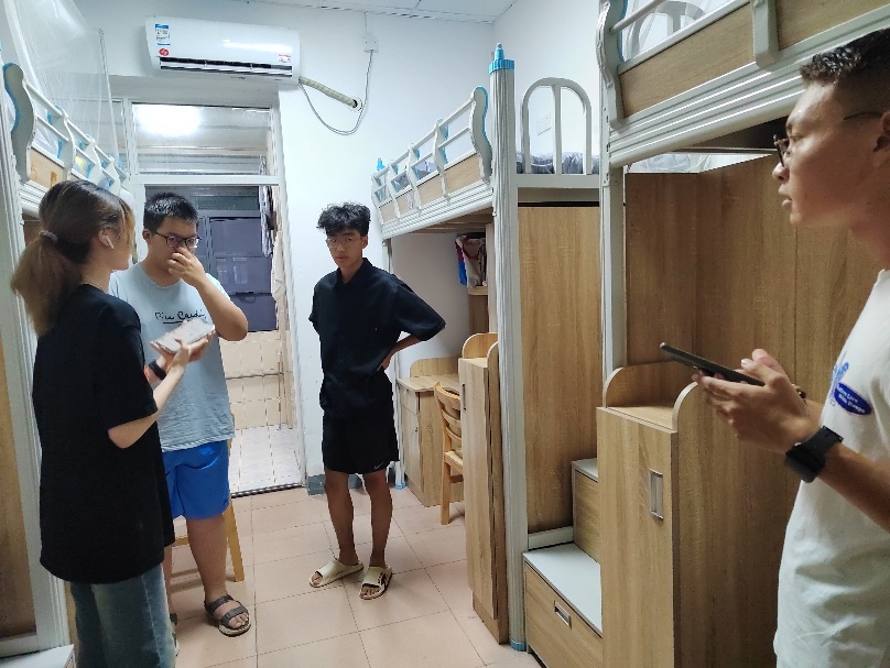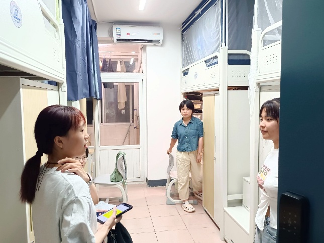 谭菲儿同志走访所带班级学生寝室