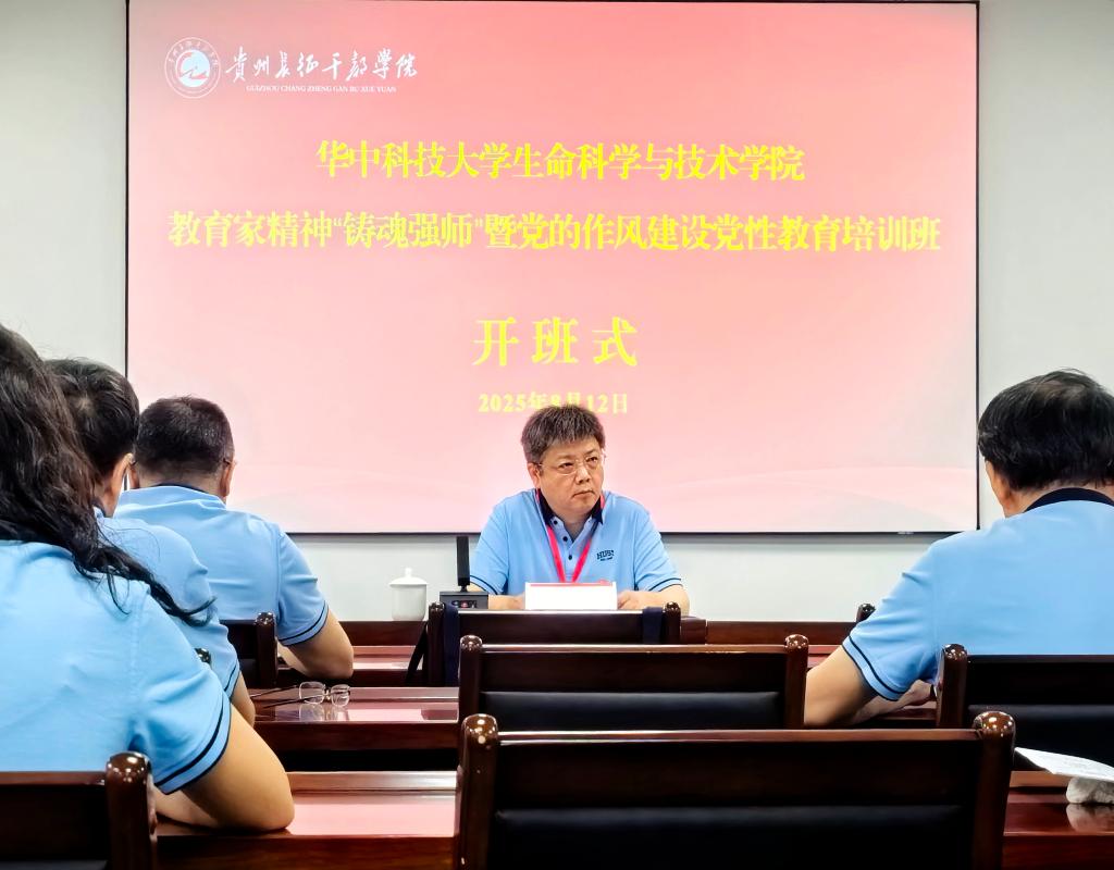 生命学院党委书记刘笔锋作开班动员讲话。他强调,今年全党深入开展中央八项规定精神学习教育,作为教育工作者,更需以“铸魂强师”为使命,以作风建设为保障,以党性教育为根基,回答好“强国建设,教育何为”的时代之问,并以“传承、铸魂、力行”为主线分享了三点思考。刘笔锋指出,长征的胜利是“一步一个脚印”走出来的,遵义会议的伟大转折,印证了“坚定信念、实事求是”的真理力量。站在历史与现实的交汇点,结合学校第五次党代会“教育科技人才一体推进”的系列部署,他提出三点倡议,一是学思践悟强担当。感悟“革命理想高于天”的信仰之力,将其转化为“为党育人、为国育才”的行动自觉;二是攻坚克难勇创新。继承拼搏精神,聚焦学科前沿领域,依托国家生命科学与技术虚拟仿真实验教学中心等平台,通过“强磁场”大科学装置的协同合力突破技术壁垒,服务健康中国战略;三是团结奋进树新风。践行八项规定精神,发扬长征“官兵一致”的传统,打造“师生共同体”,以党建引领学科交叉创新,构建“党风引领教风、教风带动学风”的良性生态。以“雄关漫道真如铁”的坚韧,在新时代的教育长征中,回答“强国建设,高校何为”之问。