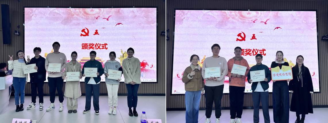 四轮比拼结束,辅导员岳琦老师、任鑫琦老师进行点评,两位老师对大家在此次活动中的精彩表现给予了充分肯定,同时希望同学们在本次比赛中有所思、有所得,将党史学习的热情延续到日常学习生活中。与会老师为优秀团队和优秀个人奖颁发获奖证书。
