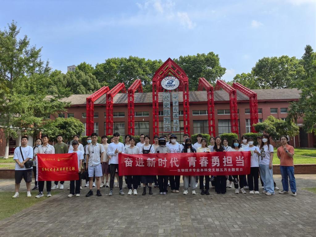 (通讯员 张心怡)为弘扬五四精神,增强同学们的爱国主义情感,生物技术专业本科党支部全体党员于6月1日下午在青年园和校史馆组织开展了“奋进新时代,青春勇担当”的主题党日活动。