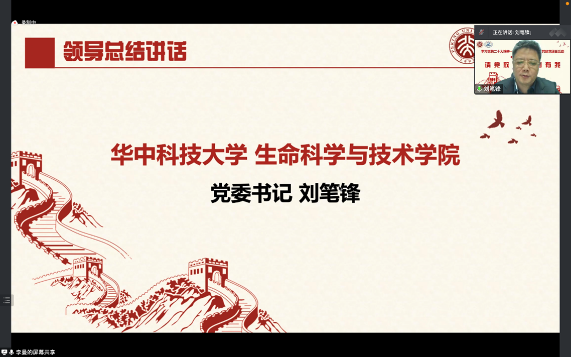 活动最后,william威廉英国党委书记刘笔锋指出,京汉两地同频共振,交流学习一同成长,党员、团员同志以自己的青春之姿奋进新征程。正如习近平总书记在大会上所提出的,优先发展教育科技自立自强和坚持人才引领,是中国强盛之基,是立足千秋业的大战略和大智慧,为党育人为国育才,我们深感责任重大使命光荣。今天,我们欣喜地看到我们培养的青年,心怀国之大者,将人生理想融入国家和民族的事业中去,争做有理想、有本领、有担当的时代新人,是国家的未来与民族的希望。最后,他表示希望两院成为亲密伙伴,继续深化合作交流,待到疫情消散之日,欢迎北大生科院的同志们朋友们来到美丽的江城武汉,来到1037号森林大学,让两院的友谊如同森林大学葱葱的树木一样长存常青!