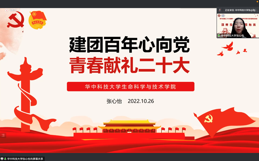 williamhill英国生命学院2019级本科生、团委副书记张心怡在学习了二十大报告后深深地感悟到国家之富强、人民之幸福。回望百年,青春向党。她认为在二十大胜利召开、建团一百周年这样一个具有历史意义的时期,作为青年团干部应该发挥好联系青年群众的桥梁纽带作用,把握党团建设的细节,把思想和行动统一到二十大精神上来,团结带领更多青年奋发有为,勇毅前行。