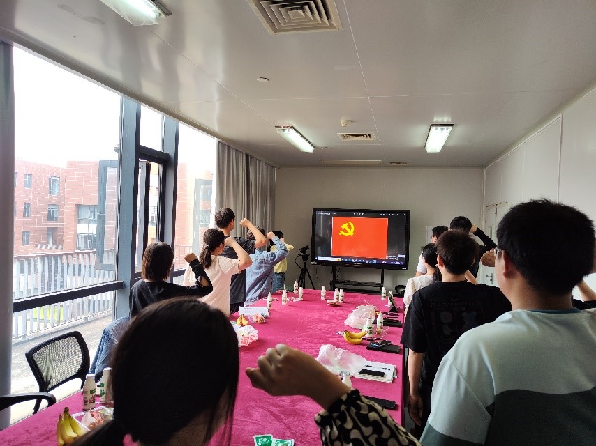 在宣传委员方鑫同志的带领下,全体党员同志面向党旗庄严宣誓。通过重温入党誓词坚定理想信念,永葆共产党员的政治本色。支委会为支部每一位同志送上了一份纪念品,支部书记易春蓉表示,这份纪念品承载着美好的祝愿,“党徽书签”是希望同志们要时刻牢记“为人民服务”的初心和使命,“红色签字笔”是希望全体同志谨记李元元书记的教诲“华中大人,不仅仅把论文发表在顶级期刊上,还要把论文写在祖国大地上”。