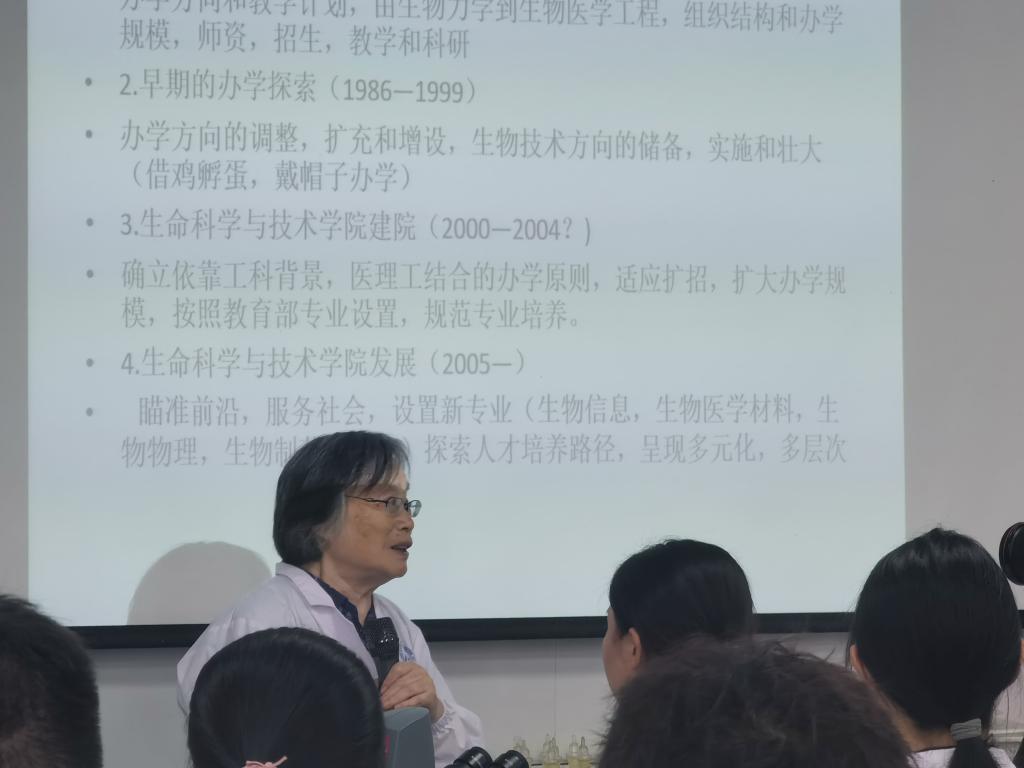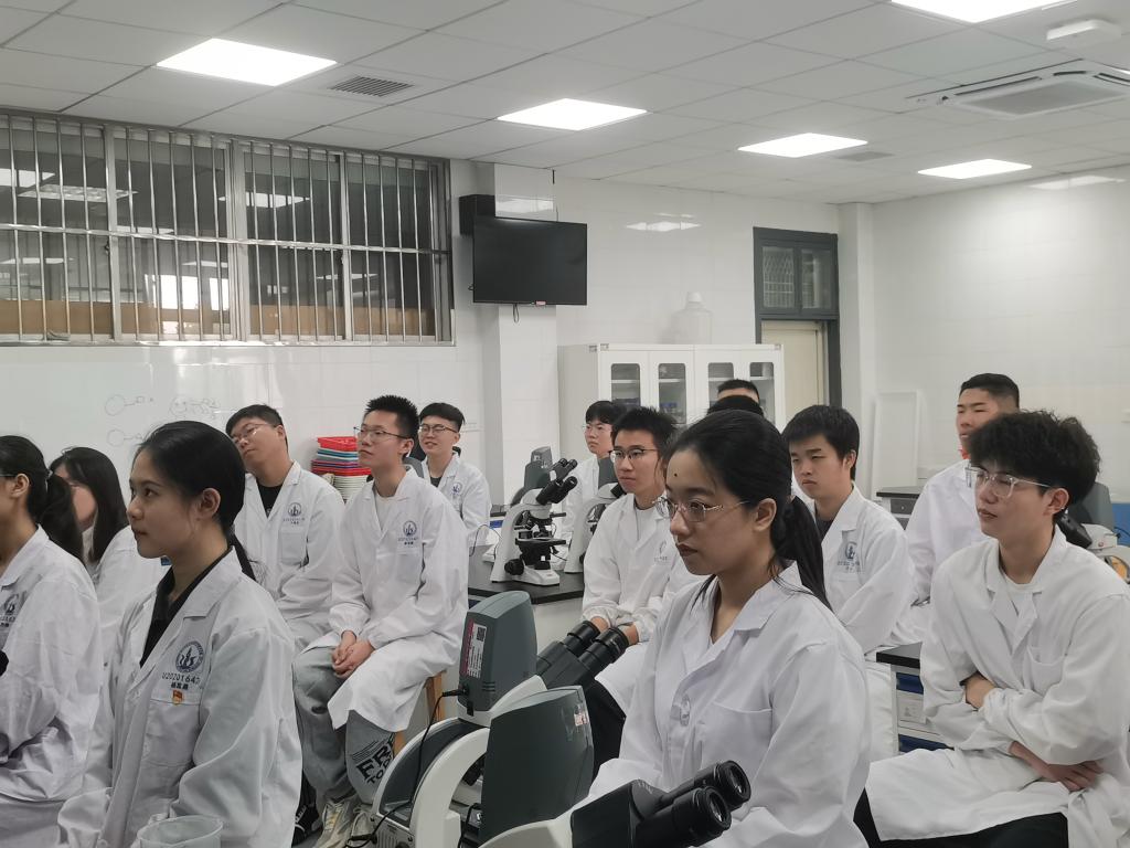 刘曼西老师同时讲述了学院院史、学科发展史,从华中大生命学科建立谈起,谈到了学校对生命学科的重视与日俱增,谈及了生命学院学生规模、师资力量和科研实力的逐渐壮大,并鼓励同学们即使离开生命学院后,也应利用自己的专业知识,在未来积极与生命学院开展科研合作。