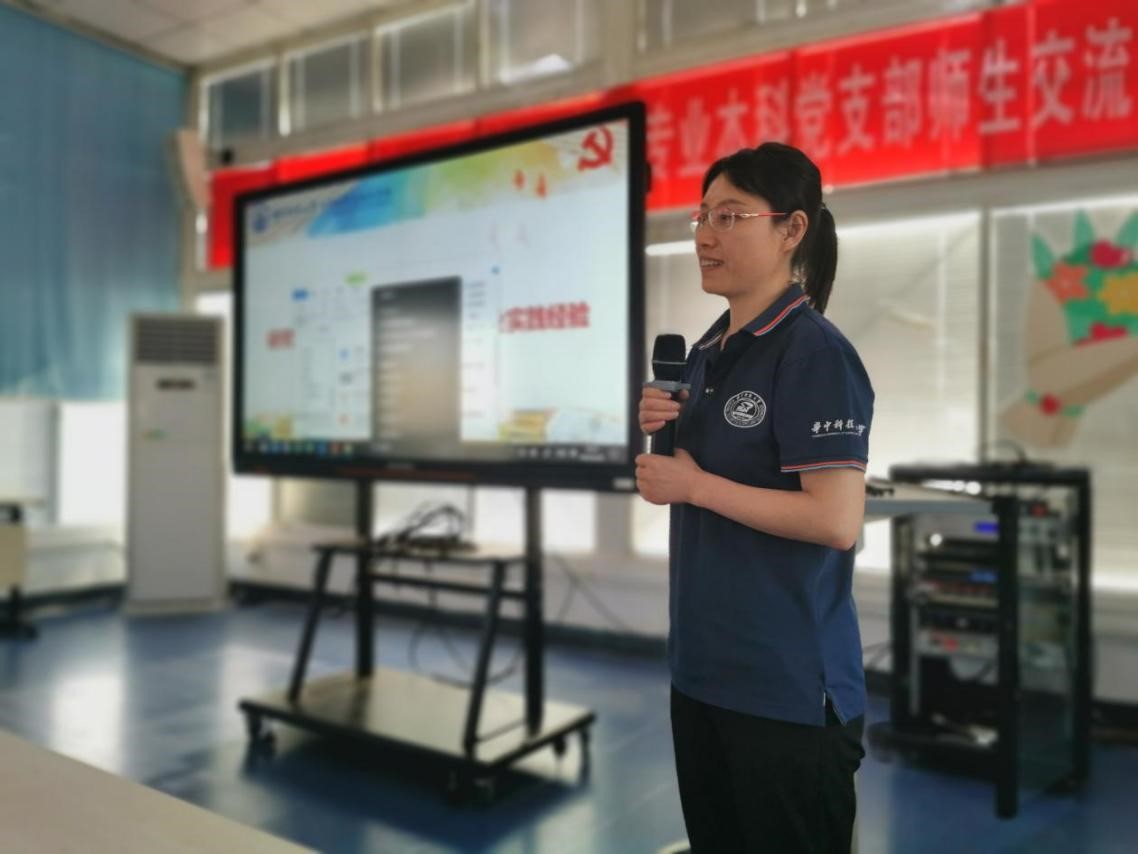 冯玉美同志分享了“全国百个研究生样板党支部”生物技术系研究生第二党支部的故事。他们面向国家重大需求,青春力行、科技赋能,组建乡村振兴红色筑梦突击队,深入乡村振兴一线,服务基层和社会,传承支部红色基因文化。
