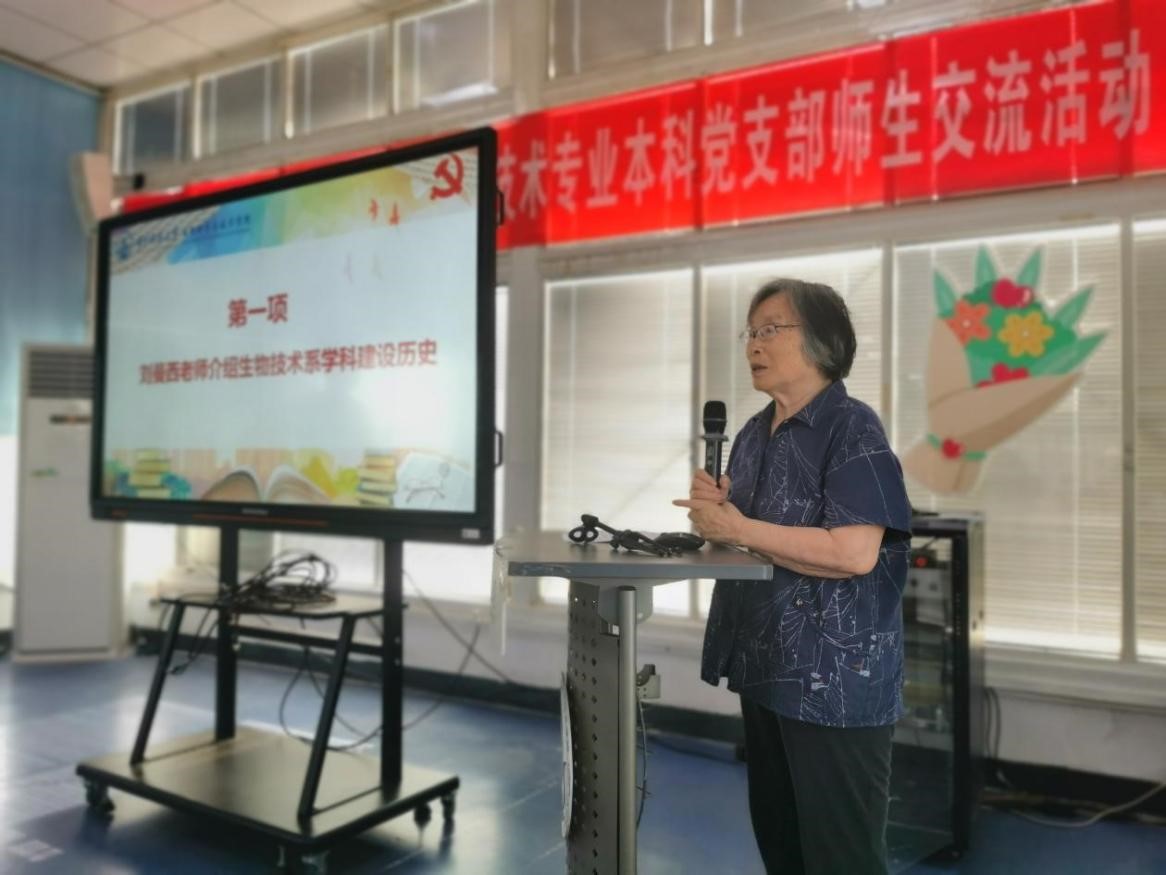(通讯员 金方辰)6月20日下午,我院生物技术专业本科党支部在东十一楼9楼阳光房开展师生交流活动。关工委委员、生命学院退休教师刘曼西教授,生物技术系教工党支部书记付春华教授、劳育辅导员郑方、生物技术系研究生第二党支部冯玉美同志以及支部全体党员参加,活动由支部书记李若楠主持。