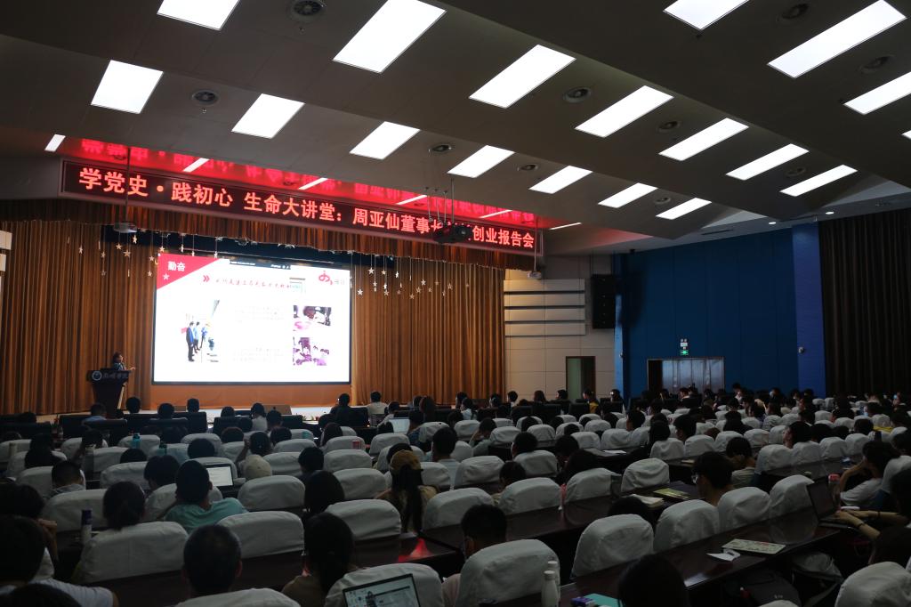5月7日晚上,生命学院在启明学院一楼报告厅举办了“学党史践初心”生命大讲堂活动。学院谢尚县教授邀请十九大代表神冠集团董事长周亚仙做创新创业报告,学院教师和学生代表参加此次活动。