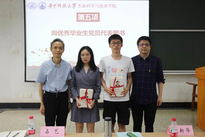 在党课的最后,还举行了向优秀毕业生党员代表赠书活动和重温入党誓词仪式,党员代表畅杰带领全体党员重温入党誓词,面对党旗,庄严宣誓。生命学院2021届毕业生党员最后一节党课在声声铿锵有力的誓言中结束。