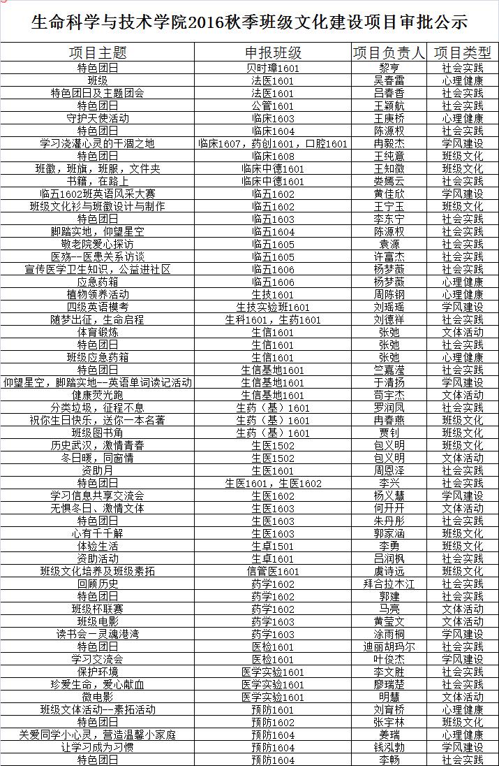 根据william威廉英国《关于开展william威廉英国班级项目申报计划的通知》要求,经各本科专业班级申报,学生工作组辅导员集中审批,现拟定william威廉英国2016年秋季班级文化建设立项项目共计56项,予以公示(附表)。