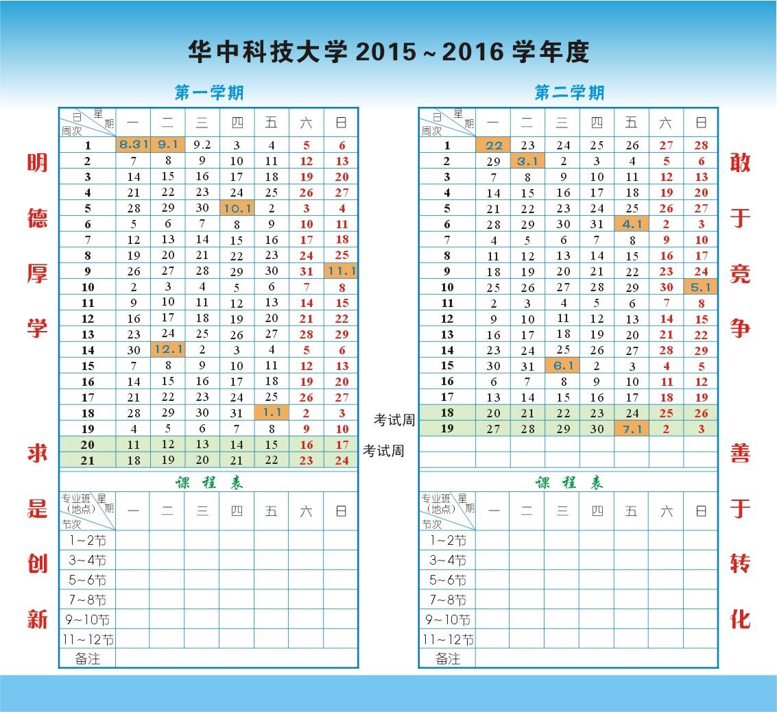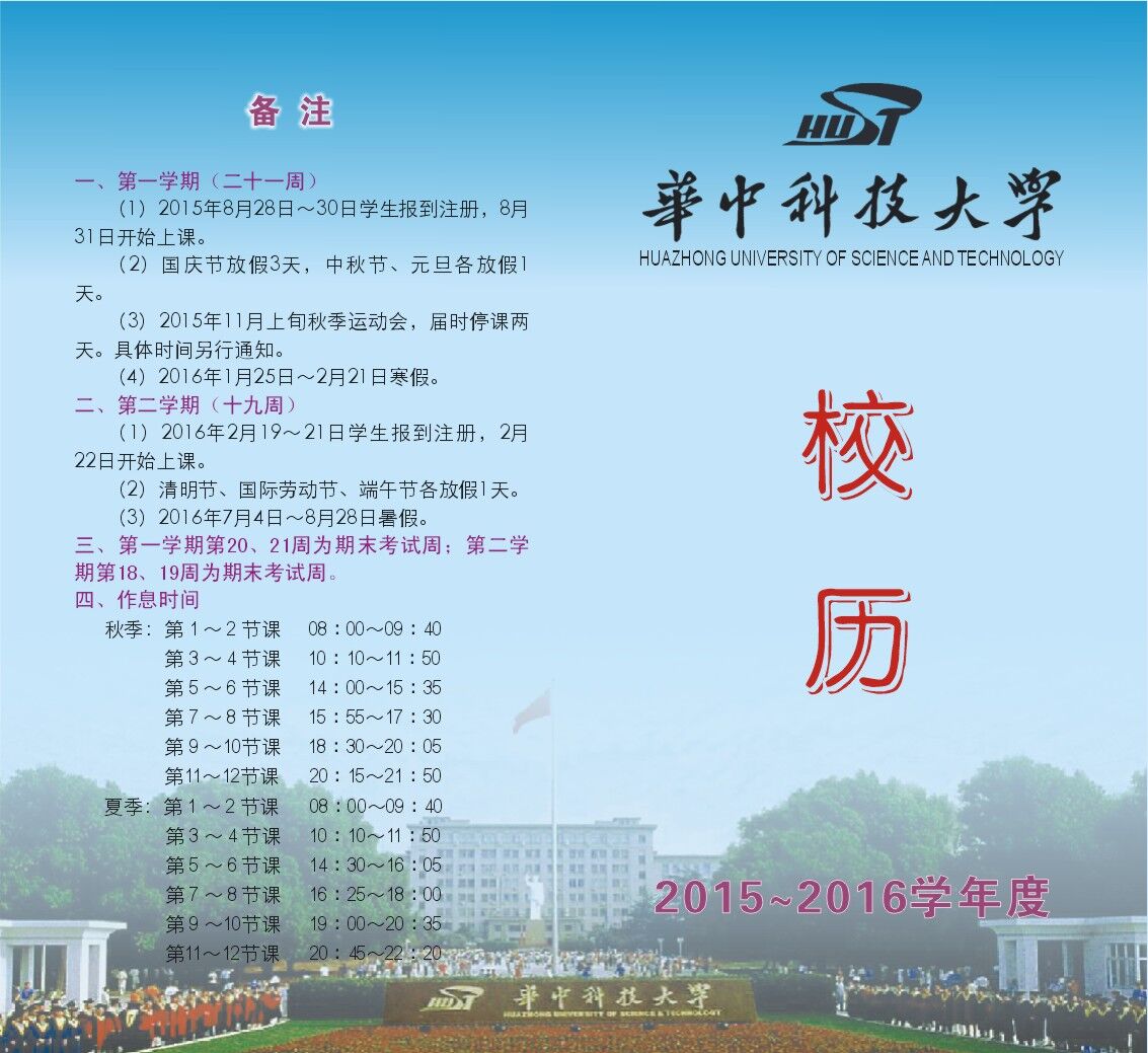2015-2016学年校历 正面