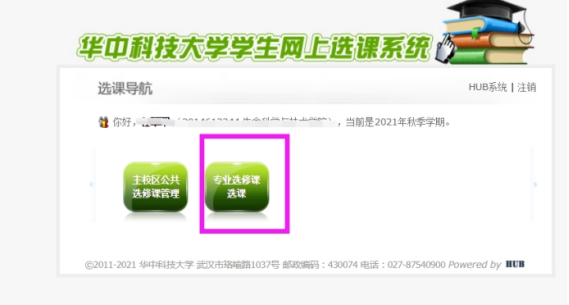 建议用电脑登录,使用360极速浏览器,系统接智慧华中大统一身份认证,输入账号及密码,进行登录,进入选课模块 选择“专业选修课选课” 按钮 ,即可按照 “课程”选课。