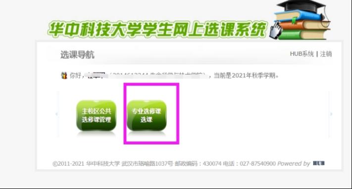 建议用电脑登录,使用360极速浏览器,系统接智慧华中大统一身份认证,输入账号及密码,进行登录,进入选课模块 选择“专业选修课选课” 按钮 ,即可按照 “课程”选课。