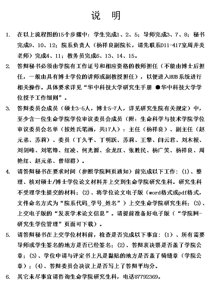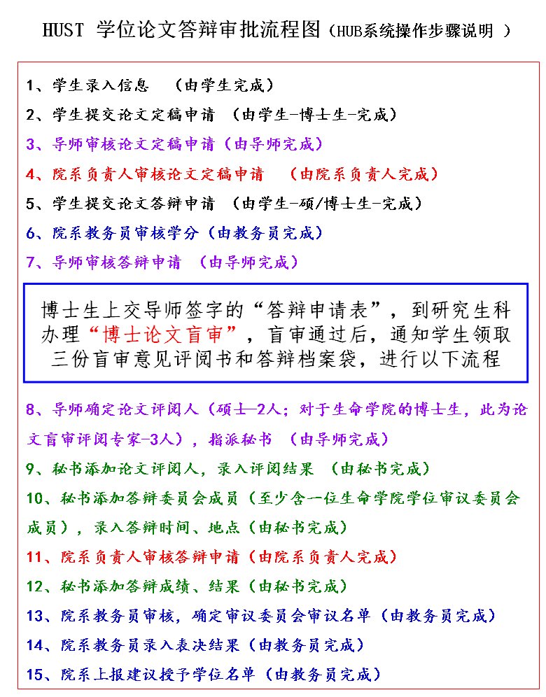 “HUST学位论文答辩审批流程图”及说明