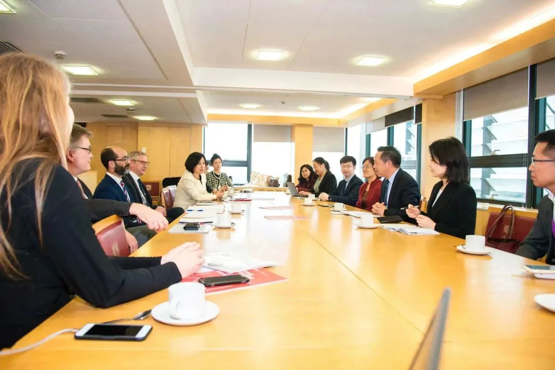 在伦敦玛丽女王大学,陈建国会见了该校外事副校长Colin Grant一行。双方共同回顾了两校自2019年建立伙伴关系以来取得的丰富合作成果,并就进一步深化两校核心合作伙伴关系,以及在种子基金、暑期学校、联合培养项目等方面持续深化合作达成重要共识。我校化学学院、电信学院、管理学院代表分别与该校电子工程与计算机科学学院、物理及化学科学学院、商业管理学院进行了合作对接,探索共建绿色通信联合研究中心、知识产权硕士1+1联合培养项目等合作可能。