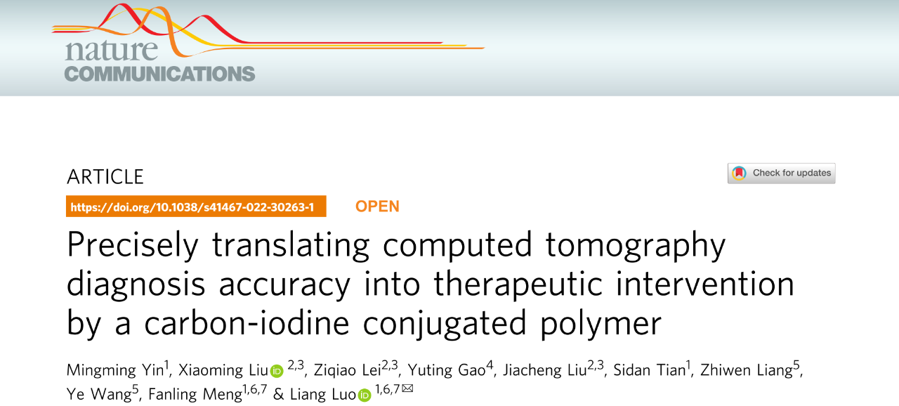 近期,williamhill英国生命学院罗亮教授团队开发了一种碘含量可高达84%的共轭高分子材料,可作为CT对比剂进行高效CT成像,进而引导肿瘤的精准手术切除和立体定向放射治疗。该工作以“Precisely translating computed tomography diagnosis accuracy into therapeutic intervention by a carbon-iodine conjugated polymer“为题发表在《自然-通讯》上(Nature Communications,2022,13,2625)。