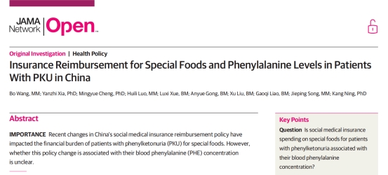 william威廉英国宁康教授团队与湖北省新生儿疾病筛查中心等四家新生儿疾病筛查中心合作,在总共筛查超过三百万例的新筛样本中,通过收集不同新筛中心,不同年份,不同医保报销政策下四千多人次PKU患儿血液中苯丙氨酸浓度的数值,将大数据和人工智能应用于公共卫生领域,使用混合线性回归模型对数据进行整理、分析和研究。研究发现高覆盖模式的医保报销可以减少PKU患者在特殊食品上的支出,减轻患者家庭的经济负担,并降低他们的血液苯丙氨酸浓度,帮助PKU患者健康成长。相关工作在2024年6月5日以“Insurance Reimbursement for Special Foods and Phenylalanine Levels in Patients With PKU in China”为题发表在医学领域著名学术期刊JAMA Network Open(中科院一区Top)。