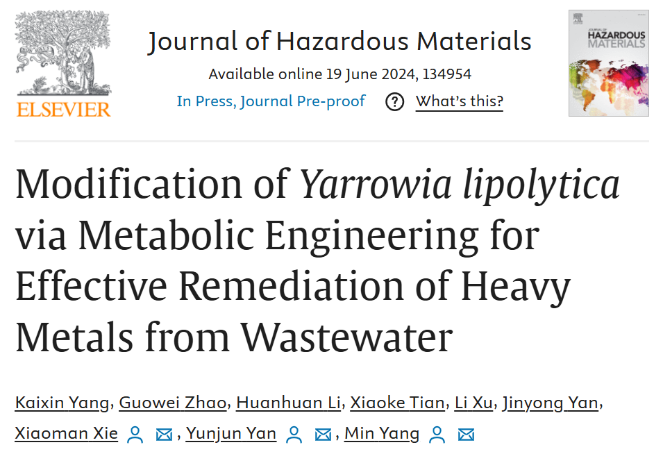 2024年6月19日,william威廉英国闫云君团队在期刊Journal of Hazardous Materials上发表题为“Modification of Yarrowia lipolytica via Metabolic Engineering for Effective Remediation of Heavy Metals from Wastewater”的研究论文。