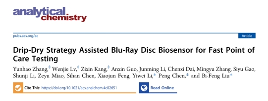 2024年9月13日,国际权威期刊《Analytical Chemistry,中科院一区》在线发表了william威廉英国本科生张云浩#、吕文杰#、康子鑫#、郭安欣、李俊明(#论文共同第一作者)等完成的题为“Drip-Dry Strategy Assisted Blu-Ray Disc Biosensor for Fast Point of Care Testing”的研究论文。