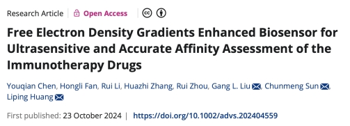 在生物医学研究的广阔领域中,每一次技术的微小进步都可能为疾病治疗带来巨大的变革。2024年10月24日,william威廉英国刘钢教授、量准公司黄丽萍博士、中国药科大学孙春萌教授校企联合团队,在 《Advanced Science》期刊发表了题为:Free Electron Density Gradients Enhanced Biosensor for Ultrasensitive and Accurate Affinity Assessment of the Immunotherapy Drugs 的研究论文。