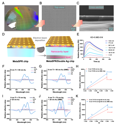 MGMSPR光学传感器的光学响应、灵敏度和重复性对分子监测至关重要。研究人员设计开发了一种具有镜面反射增强的MetaSPR芯片对低浓度蔗糖溶液具有超高折射系数的检测灵敏度,适合小分子的高精度检测。