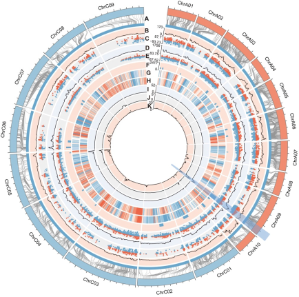 该研究首先通过将N53-2与多个黑籽甘蓝型油菜杂交,确认了N53-2中包含显性黄籽基因,并对由N53-2和黑籽材料Ken-C8构建的KN DH群体进行eQTL分析,在ChrA09染色体末端鉴定到一个包含4935个trans-eQTL的热点区,该eQTL热点区同时与ChrA09染色体上的种子含油量、种皮颜色和种子木质纤维素含量主效QTL uqA9-9共定位。在包含2276个单株的BC5F2近等基因系中将该主效QTL位点精细定位至70 kb区间内,结合近等基因系间的转录组分析和候选区间内的基因序列差异分析,最终获得了候选基因BnaA09g44670D,并将其命名为DYSOC1。