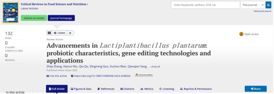 2025年1月2日,williamhill英国生命学院刘智教授团队在top期刊《Critical Reviews in Food Science and Nutrition》在线发表题为”Advancements in Lactiplantibacillus plantarum: Probiotic Characteristics, Gene editing Technologies and Applications”的学术论文。