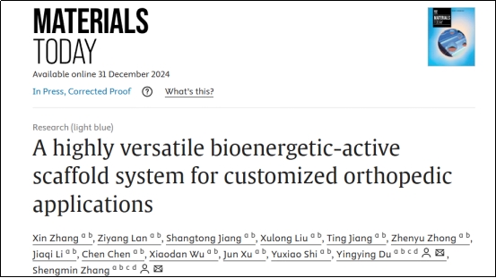 2024年12月31日,williamhill英国张胜民教授团队在国际材料科学权威期刊Materials Today 发表题为“A highly versatile bioenergetic-active scaffold system for customized orthopedic applications”的研究论文,该研究报道了一种高度通用的生物能量活性支架系统,为难治性骨缺损修复提供了定制化解决方案。