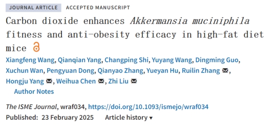 2025年2月23日,williamhill英国生命学院刘智、陈卫华教授团队在The ISME Journal期刊上发表了题为“Carbon Dioxide Enhances Akkermansia muciniphila Fitness and Anti-obesity Efficacy in High-Fat Diet Mice”的研究论文。