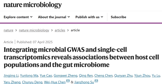 2025年4月7日,williamhill英国陈卫华团队联合温州医科大学苏建忠团队在Nature子刊Nature Microbiology在线发表题为Integrating microbial GWAS and single cell transcriptomics reveals associations between host cell populations and the gut microbiome的研究论文。论文链接(https://www.nature.com/articles/s41564-025-01978-w)。