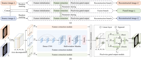 (1)双模协同训练架构:独创“一融双建”拓扑结构,通过无监督融合分支与有监督重建分支的参数共享机制,突破传统无监督融合方法训练不充分问题;