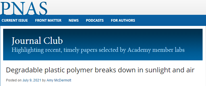 研讨专访链接:http://blog.pnas.org/2021/07/degradable-plastic-polymer-breaks-down-in-sunlight-and-air/