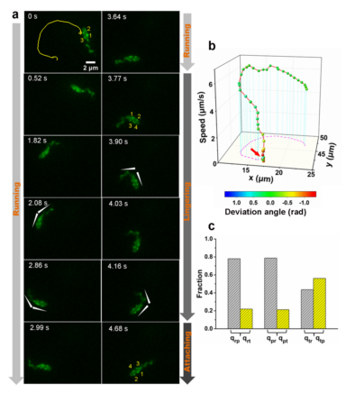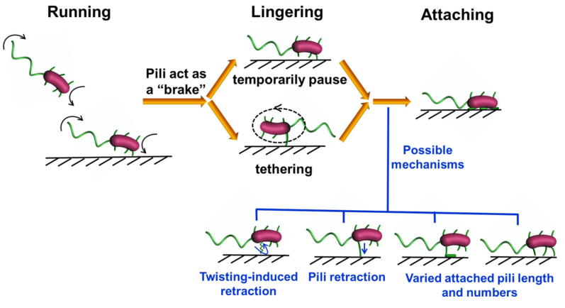 结果显示,MSHA的菌毛均匀地分布在细菌上,并用任意一点粘附到物体表面。有了这样的特点,MSHA纤毛在细菌着陆过程中充当制动和锚定的功能。由此提出并验证了霍乱弧菌着陆的模型,包括三个阶段:运行、徘徊和附着。