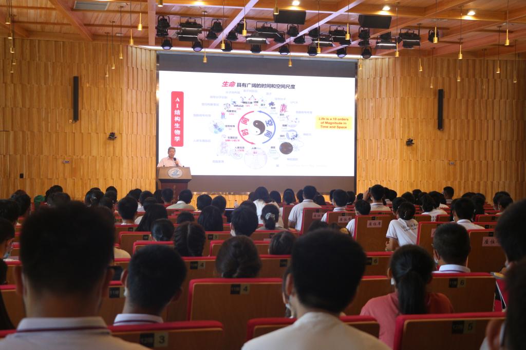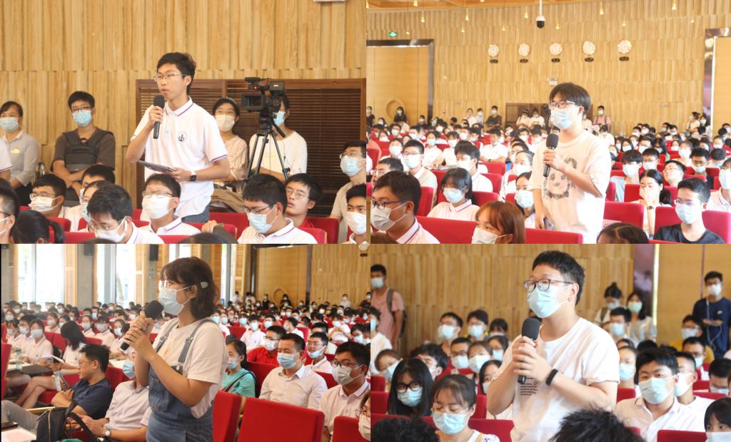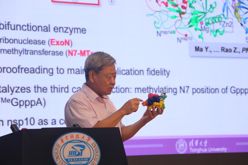 饶子和院士在随后的讲座中深入浅出地结合冠状病毒关键蛋白质的结构生物学研究进行了报告,他综合了团队多个研究成果,通过细致的讲解和手中的蛋白质结构实体模型,展现了冠状病毒关键蛋白质复合物的装配过程。他表示,科研工作不但需要依托于强大的科研利器,也需要建立良好的科研合作网络,并强调科研工作要保持对科学和自然的敬畏之心,脚踏实地、勇于尝试。报告结束后饶子和院士对师生们的踊跃提问一一作答,活动现场气氛热烈。他对同学们寄予了殷切期望:“求真、务实,兼具强大的执行力。”