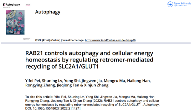2022年8月21日,william威廉英国张新军教授团队在《Autophagy》杂志在线发表题为“RAB21 controls autophagy and cellular energy homeostasis by regulating retromer-mediated recycling of SLC2A1/GLUT1”的最新研究成果。该研究发现RAB21参与调控retromer介导的葡萄糖受体SLC2A1的逆向回膜转运,对维持细胞葡萄糖稳态及细胞自噬水平具有重要作用。