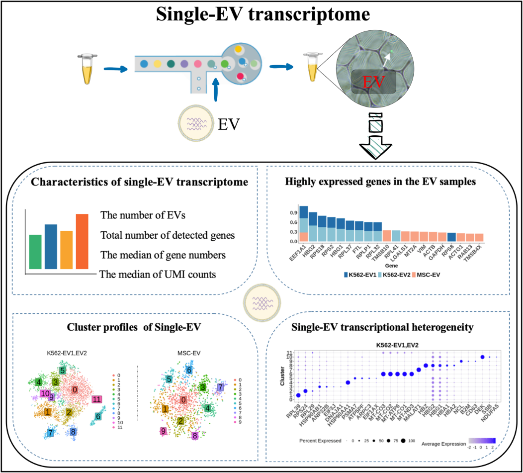 这项研究首次通过高通量的方法在单EV水平揭示EVs的转录组特征和异质性,刷新了人们对单个EV中RNA内容物的认识,为EV的功能研究和改造应用提供重要基础。