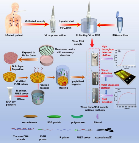 SARS-CoV-2高通量和即时检测纳米等离子体增强等温扩增示意图