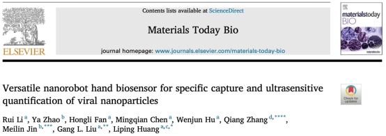 2022年10月1日,williamhill英国刘钢教授团队,在Materials Today Bio期刊上发表了题为:Versatile nanorobot hand biosensor for specific capture and ultrasensitive quantification of viral nanoparticles的研究论文。