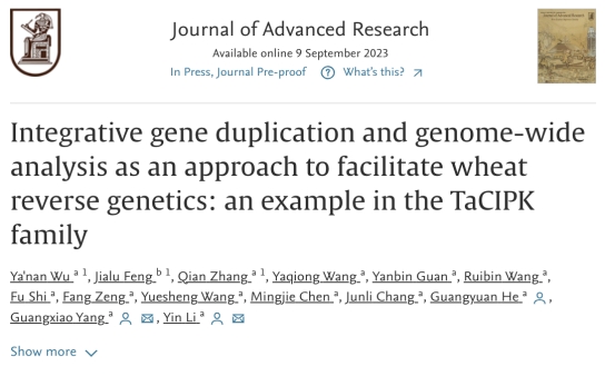 【科研动态】Journal of Advanced Research | 生命学院何光源/杨广笑/李引团队构建作物iGG基因挖掘策略并用于小麦耐逆基因TaCIPK鉴定