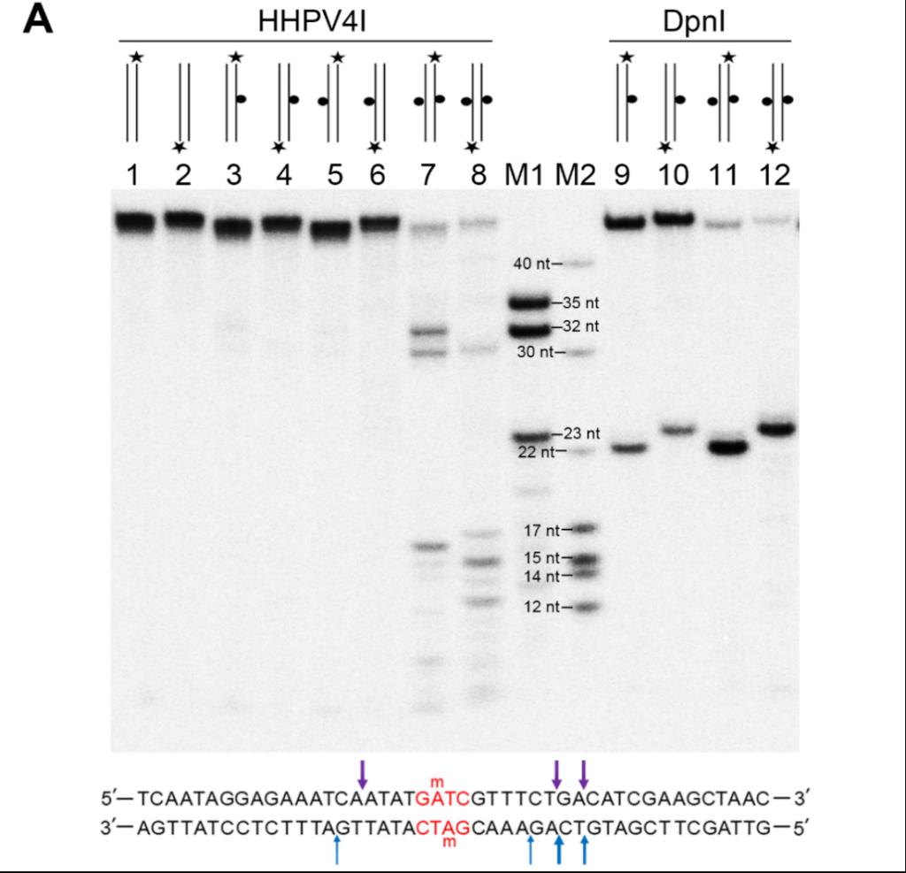 HHPV4I是目前已知唯一来源于病毒的修饰依赖限制性内切酶、DpnI之后第二个专一性切割m6A位点的限制性内切酶、也是唯一从m6A位点两侧同时切割的限制性内切酶。基于HHPV4I高度特异的酶学特点,课题组将进一步探索其生物学意义并开发其应用价值。