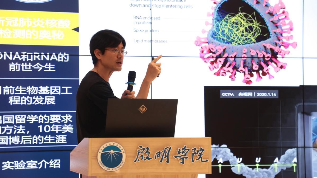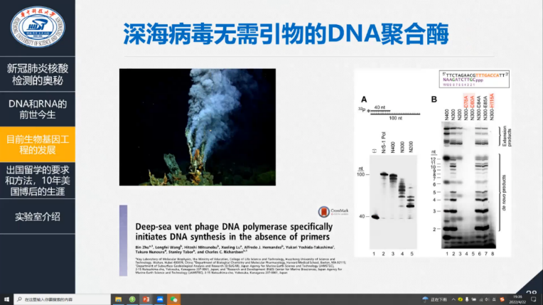 朱斌教授以疫情环境下日常必做的新冠肺炎核酸检测切入,以平实易懂的话语和图示展示了核酸酶的检测功效。他还提出,新冠病毒本身是一个非常精妙的RNA复制机器,RNA合成技术突破的秘密很可能隐藏其中,相关基础研究可能化祸为福,展现了他想法新颖视角独特的一面。
