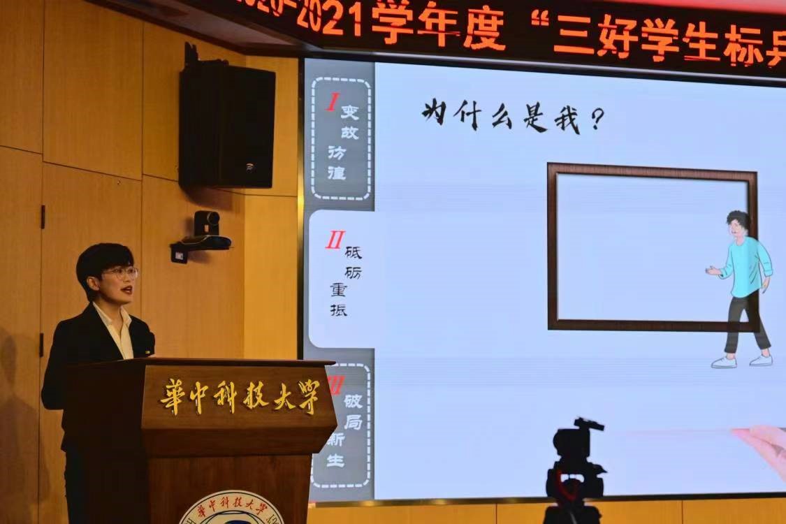 在华科大,我们勇于担当不设限。老师们的引导、学长学姐们的鼓励给我力量。我也像他们一样参加明星学子面对面、志愿科普宣讲、党员学业帮扶,在同学们中传递自己的微薄力量;也带领社会实践队到祖国各地走访、调研,结合专业所学,分析解困良方。我也获得了校三标、自强大学生标兵等各项荣誉。这些奖项不仅是一种肯定,更是对我在党旗领航下担当与奉献的鞭策。责任与担当,价值与情怀永远流淌在华科大的血脉中,我们的青春也必将与华科大的精神一脉相承。
