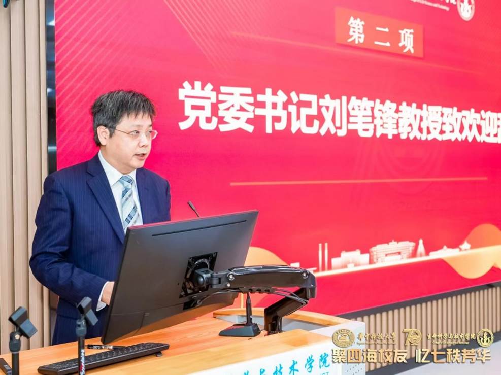 刘笔锋教授致欢迎辞,他对到场的校友嘉宾表示热烈欢迎和衷心感谢。他深情回顾生命学院42年发展历程,为一代代生命学子顶天立地,追求卓越的精神感到骄傲。他总结概括生命学院建设发展的四个“一流”,展示学院在科学研究、人才培养、成果转化等领域的丰硕成果。他期待校友们与母校加强联络和沟通,凝聚力量,团结奋进,为推进生命学院建设发展谱写新的篇章。