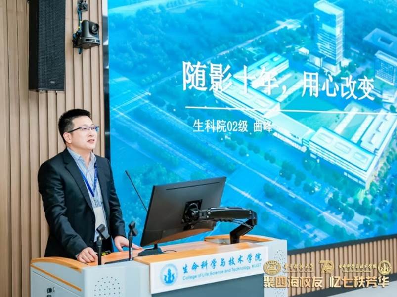 2002级校友,上海联影医疗科技股份有限公司区域业务总监曲峰为大家带来报告《随影十年,用心改变》。他从自身工作经历介绍了其“十年”改变历程。联影集研发、生产制造于一体,坚持核心技术创新,业务领域广泛,国产设备占比显著提高。他呼吁社会加大对医疗行业的关注与合作,共建全人类健康福祉。