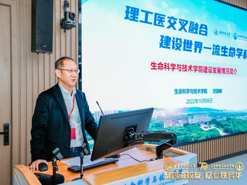 刘剑峰教授详细介绍学院的发展情况,他提到生命学院学科发展稳步前进,科学研究成果丰硕,创新创业特色鲜明,立德树人成效显著,在42年筚路蓝缕的发展历程中始终坚持“理工医交叉”的发展思路,立足学科特色优势,创造斐然科研成绩,在社会服务中体现责任担当。并指明了生命学院的未来战略目标及建设任务。他期望生命学院教学楼建设及师资力量的后期任务能够得到校友会的支持,助力母校发展。
