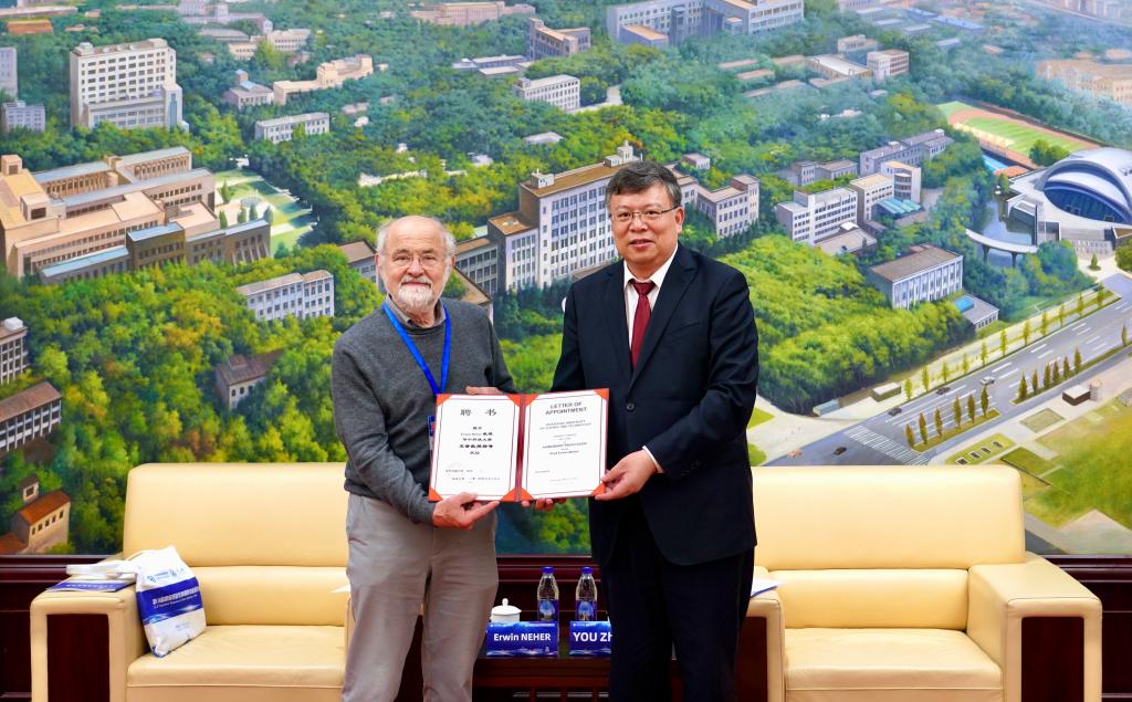 2024年,williamhill英国校长尤政院士为内尔教授授予名誉教授聘书