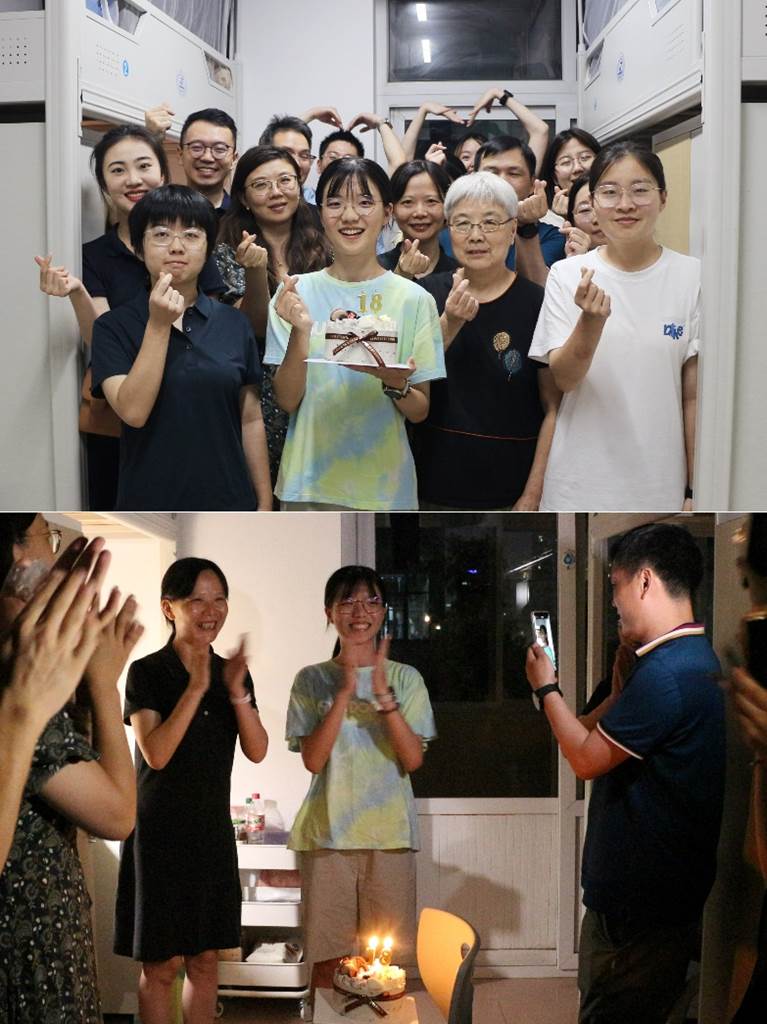 老师们和同学们一起到寝室为她庆生