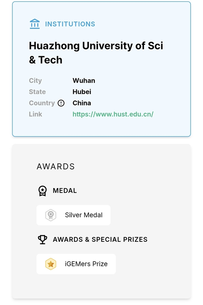 经过近一年的时间,两支队伍完成了项目规划、模型设计、实验验证以及综合实践等一系列工作,在现场积极准备,圆满完成汇报和演讲任务。HUST- UEVE-UPSaclay团队对秀丽隐杆线虫的设计吸引了评委的兴趣,在交流时间与队员进行了详细了解。该团队成员全部来自生命学院中外合作办学项目学生,今年是第二年参赛,也是第二届中外合作办学学生主导参赛,成员通过在中法两地的顶尖实验室学习和多种科研实践中不断提升自身竞争力。HUST-China团队用塑料产品展示PET降解成效的创意被现场队伍认可,具有极高人气,该团队作为学院本科生创新团队代表连续多年参加各类双创赛事,今年还获得了中国生物工程学会合成生物学分会举办的合成生物学创新赛金奖,以及第九届全国大学生生命科学竞赛省级三等奖等多个奖项。两支队伍参赛情况如下: