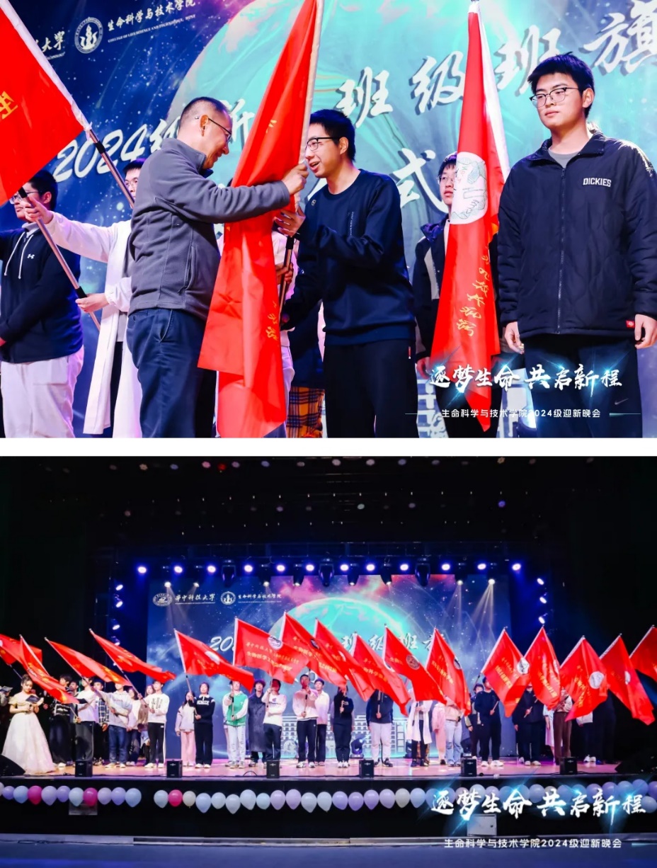 之后,新生班级班旗授予仪式正式开始,院长刘剑峰教授亲手将班旗交给各位班级代表。各班代表手中挥舞的班旗,对于每个班级而言,不仅是一面旗帜,更象征着团结、友爱以及共同奋斗的精神。2024级的同学们将带着这份力量与信念,勇敢地迈向未来,书写属于自己的精彩篇章。